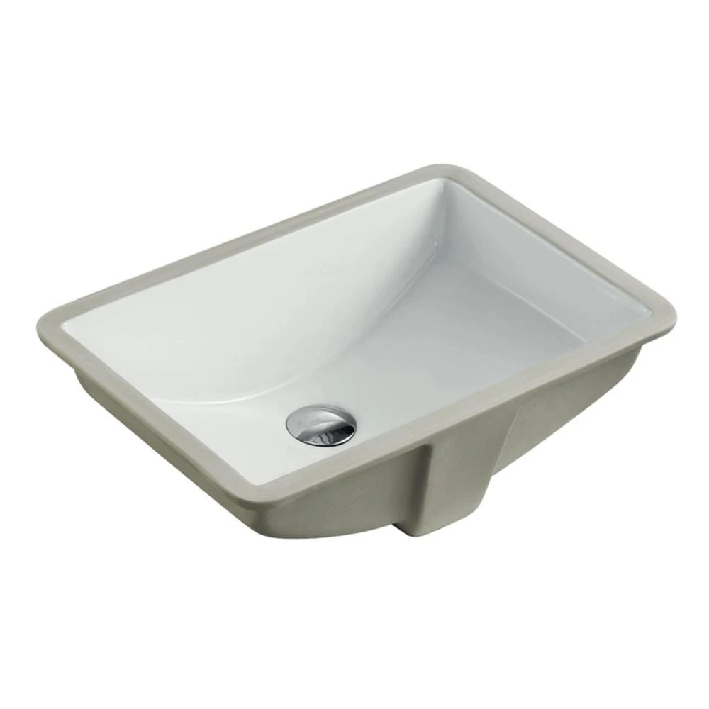 Ceramic Rectangle Undermount Bathroom Sinks Are Our Most Luxurious Sinks Ever. It compatible with most wall-mount or countertop-mount faucets. Simple and versatile design, easily match with any fixtures in the bathrooms. Neat and clean undermount installation make this sink an affordable luxury Rectangle Shape Sink with Overflow Certified and Listed by cUPC with limited lifetime warranty 20-7/8 in. x 14-3/4 in. x 8 in. (Exterior) 18-3/4 in. x 12-1/4 in. x 5 in. (Interior) 24 Minimum Cabinet Size Whats Included: – Mounting Hardware – Installation Template.