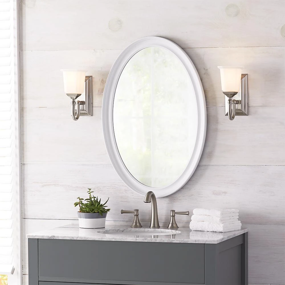 The Home Decorators Collection 21 in. W x 31 in. H Framed Wall Mirror is the fog-free mirror you’ve always dreamed of! Our innovative, fog-free technology is safe, affordable and does not require heating elements. You can finally enjoy a fog-free view after a steamy shower. You’ll never have to wipe off your mirror, or use a hairdryer just to get ready for the day. This beautiful mirror features an oval shape in a classic, white finish. Our fog-free wall mirror is perfect for your bathroom vanity, but can be also displayed in your bedroom, living room or any room in your home. The versatility of this mirror allows you to hang it vertically or horizontally to complement your décor style.