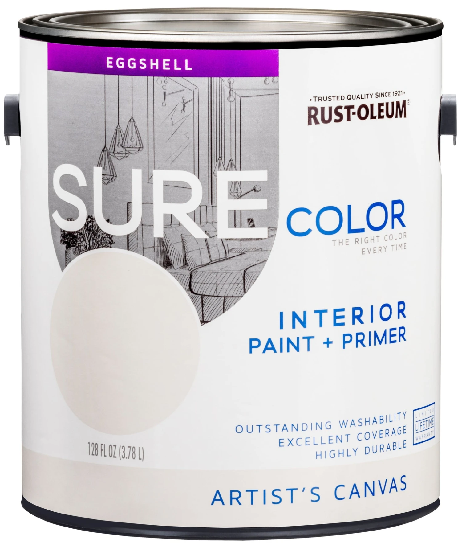Rust-Oleum Sure Color Interior Paint + Primer offers designer-inspired, pre-mixed colors that are perfect for any space. Vibrant color palette comes in three sheens: flat, eggshell and semi-gloss. Sure Color is perfect for buyers on a budget who like to complete projects quickly. Sure Color – your ideal color, every time!