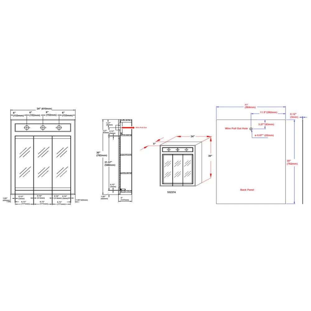 - 24 in. W x 30 in. H medicine cabinet provides ample storage for rooms with limited space