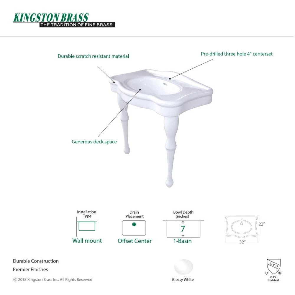 The console sink features an elegant vitreous china construction that is stain-resistant, easy to clean and germ-resistant. This bathroom sink features traditional styling, offering a classic touch to your bathroom decor. The sink offers your choice of faucet hole sizes from single to 4 in. or 8 in.