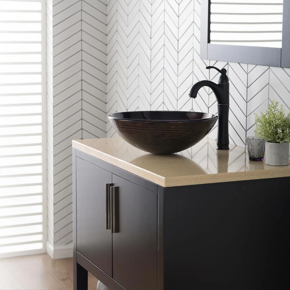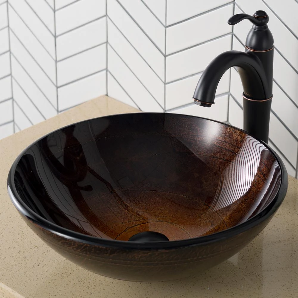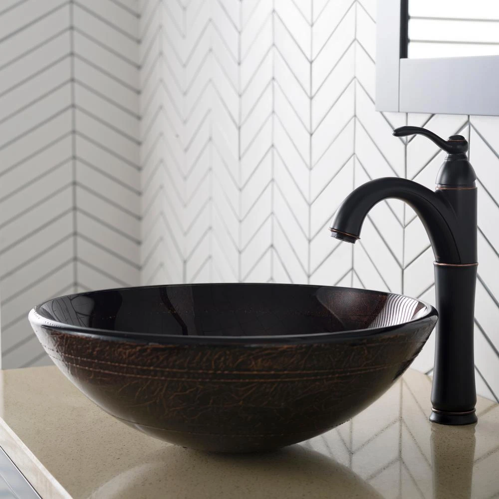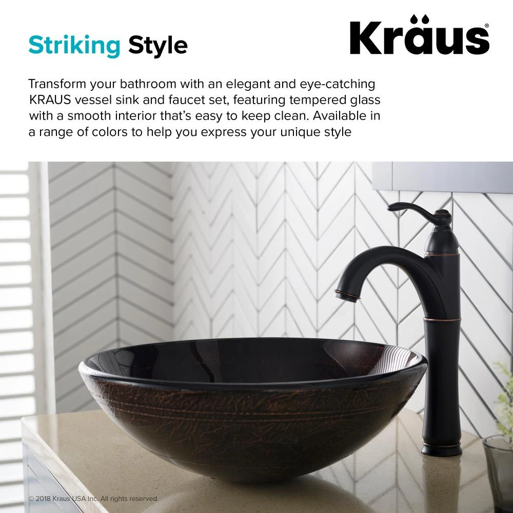 Add a touch of color to your bathroom with a KRAUS glass vessel sink and faucet combination. Handcrafted from tempered glass, the modern bathroom sink coordinates with a variety of decor styles. A freestanding basin design creates a dramatic look with contemporary appeal. Vessel installation offers an easy top mount option for all your stylish bathroom ideas. The textured surface of the sink is dynamic and requires minimal maintenance to keep clean. Pair it with a sleek Riviera faucet for additional value, and create an instant style upgrade for less.