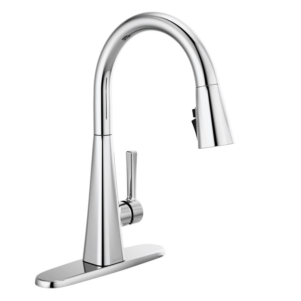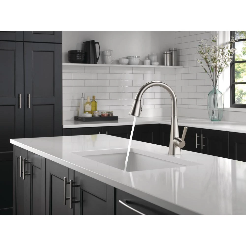 Kitchen sink faucets with Touch-Clean Spray Holes allow you to easily wipe away calcium and lime build-up with the touch of a finger. Delta ShieldSpray Technology cleans with laser-like precision while containing mess and splatter. A concentrated jet powers away stubborn messes while an innovative shield of water contains splatter and clears off the mess, so you can spend less time soaking, scrubbing and shirt swapping. Delta SpotShield Technology helps to keep your kitchen faucet cleaner, longer by resisting water spots and fingerprints. Keep your space spotless with SpotShield Technology, available across a variety of finishes for the kitchen and bath. Delta kitchen faucets with DIAMOND Seal Technology perform like new for life with a patented design which reduces leak points, is less hassle to install and lasts twice as long as the industry standard. Kitchen sink faucets with Touch-Clean Spray Holes allow you to easily wipe away calcium and lime build-up with the touch of a finger. You can install with confidence, knowing that Delta kitchen faucets are backed by our Lifetime Limited Warranty. Industry standard is based on ASME A112.18.1 of 500,000 cycles.