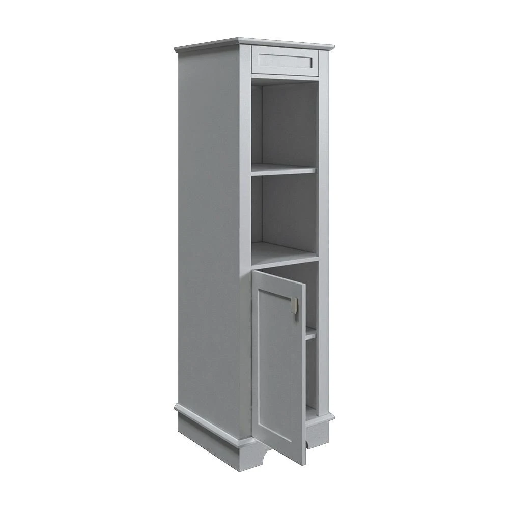 MagickWoods’ transitional Windermere collection’s understated elegance will impress homeowners and guests alike. The Windermere linen cabinet provides decorative storage for towels and favorite toiletries with its open shelves, plus concealed storage for bath items big and small. Windermere is available in Dove White and Cloud Gray finishes which blend seamlessly with any neutral decor. Both finishes are complemented and contrasted by a modern cabinet knob in a Brushed nickel finish. Windermere cabinets are conveniently pre-assembled and easy to install, and include soft-close door hinges for smooth and quiet use. Each cabinet features a decorative open toe-kick with the convenience of a recessed panel behind to avoid items rolling under the cabinet, and ease of floor cleaning. This linen cabinet is designed to pair perfectly with Windermere vanity bases and medicine cabinets (each sold separately). From bath towels to bottles of shampoo, lotions and more, store all your bath essentials in one place with this linen cabinet.