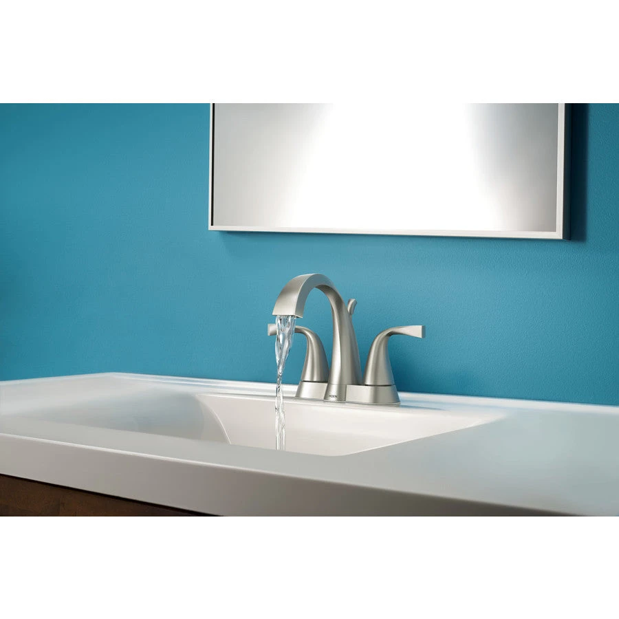 Spot Resist brushed nickel finish bathroom faucet from the Oxby collection resists fingerprints and water spots to maintain a clean, polished look
