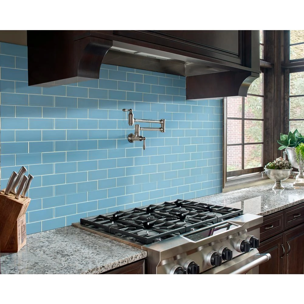 MSI’s Royal Azure 3 in. x 6 in. Glass Tile is modern elegance done right. These beautiful white crystallized glass tiles reflect light throughout a room, adding visual interest while providing a soothing backdrop. Perfectly hued for extreme design flexibility, Royal Azure oversized tiles make signature statements on walls, backsplashes, shower surrounds, and more in both residential and light commercial environments. Give your space a fresh new look with these exclusive glass tiles.
