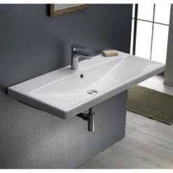 Traditional 24 in. W rectangular pedestal sink. Available in 1 or 3 faucet whole options, this sink is perfect for traditional bathrooms. Sink is made of ceramic and includes an overflow. Made and designed by high-end and well known Turkish brand CeraStyle.