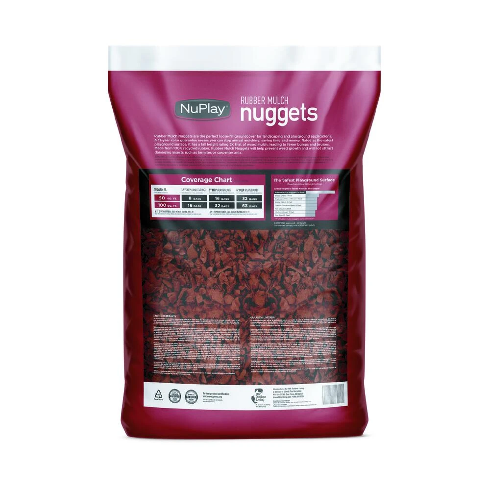 NuPlay rubber nugget mulch is the perfect loose-fill nugget ground cover for playgrounds and commercial landscaping. This is one of the safest playground surfaces on the market today with a fall height rating up to 16 Ft. with a 12-year color guarantee your children will stay safe, and your yard will look great for years to come.Â