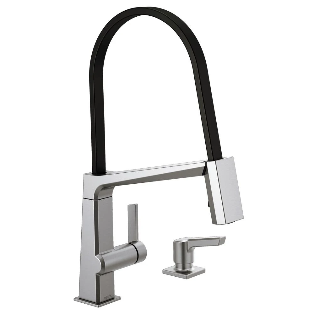 The confident slant of the Pivotal Collection makes it a striking addition to your kitchens contemporary geometry for a look that makes a statement. Delta MagnaTite Docking uses a powerful integrated magnet to pull your faucet spray wand precisely into place and hold it there so it stays docked when not in use. Delta faucets with DIAMOND Seal Technology perform like new for life with a patented design which reduces leak points, is less hassle to install and lasts twice as long as the industry standard. You can install with confidence, knowing that Delta faucets are backed by our Lifetime limited warranty. Industry standard is based on ASME A112.18.1 of 500,000 cycles.