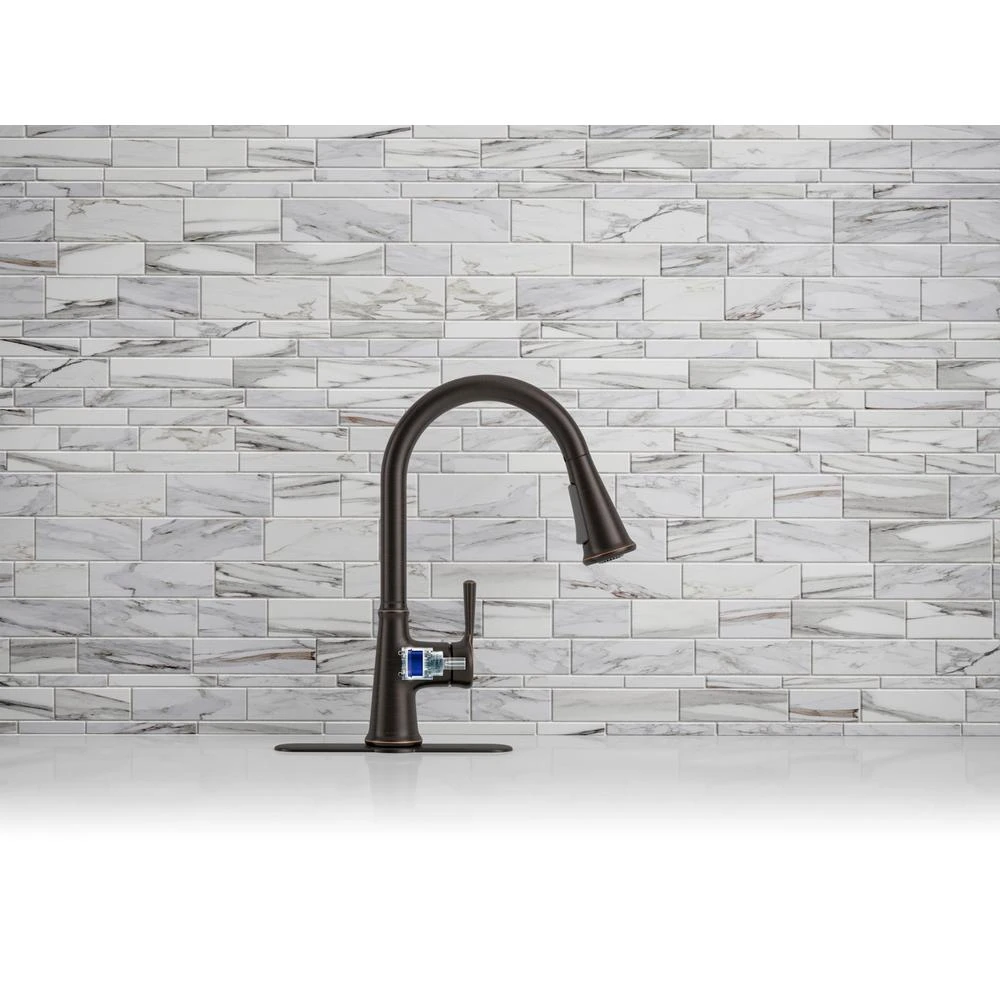 - Single lever handle is simple to use and makes adjusting water temperature easy